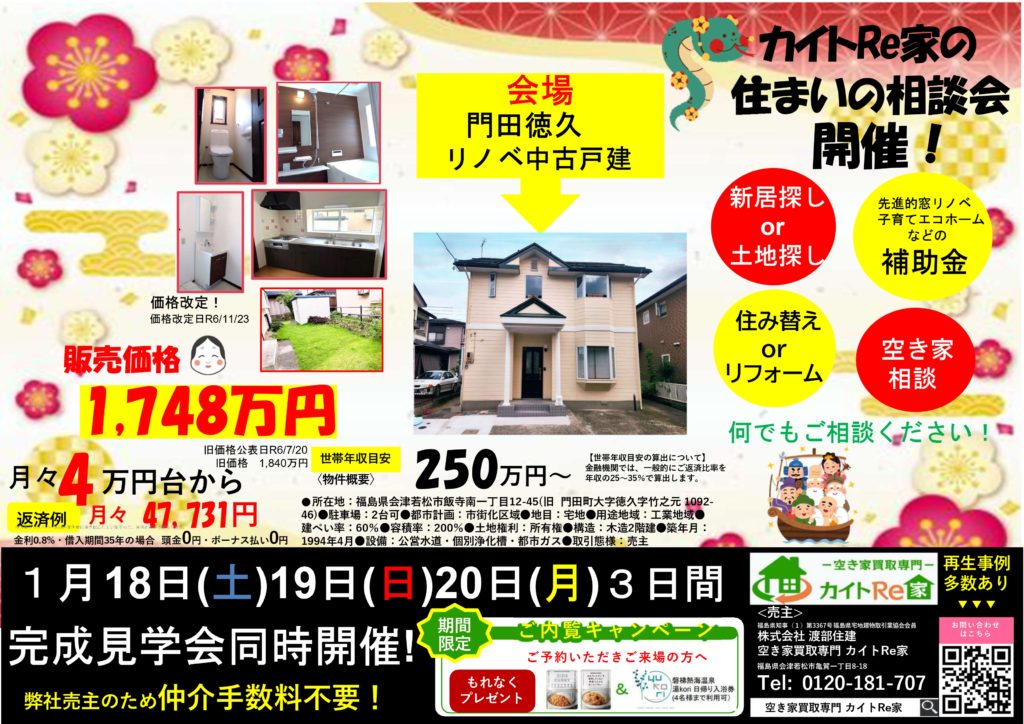 来たる1月18日(土曜日)19日(日曜日)20日(月曜日)3日間にわたり、住まいの相談会を開催します!